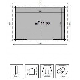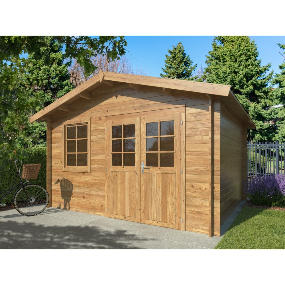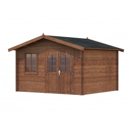 Casa in legno di abete impregnato in autoclave essiccato color marrone misura 380x337 cm pavimento escluso.