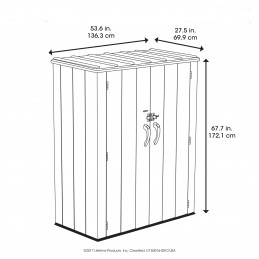Armadio da esterno 136x70x172cm realizzato in polietilene ad alta densità a doppia parete protetta con UV, ed è fornito completo di pavimento.