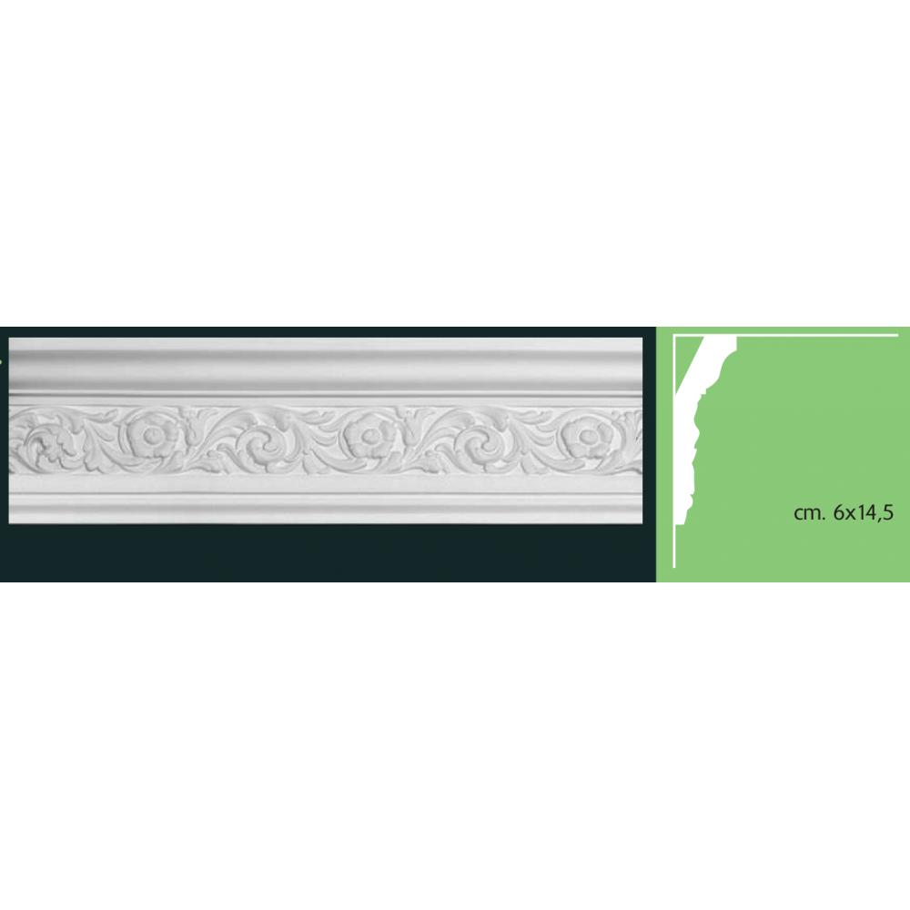 Cornice in gesso colore bianco dimensione 6x14,5x200 cm