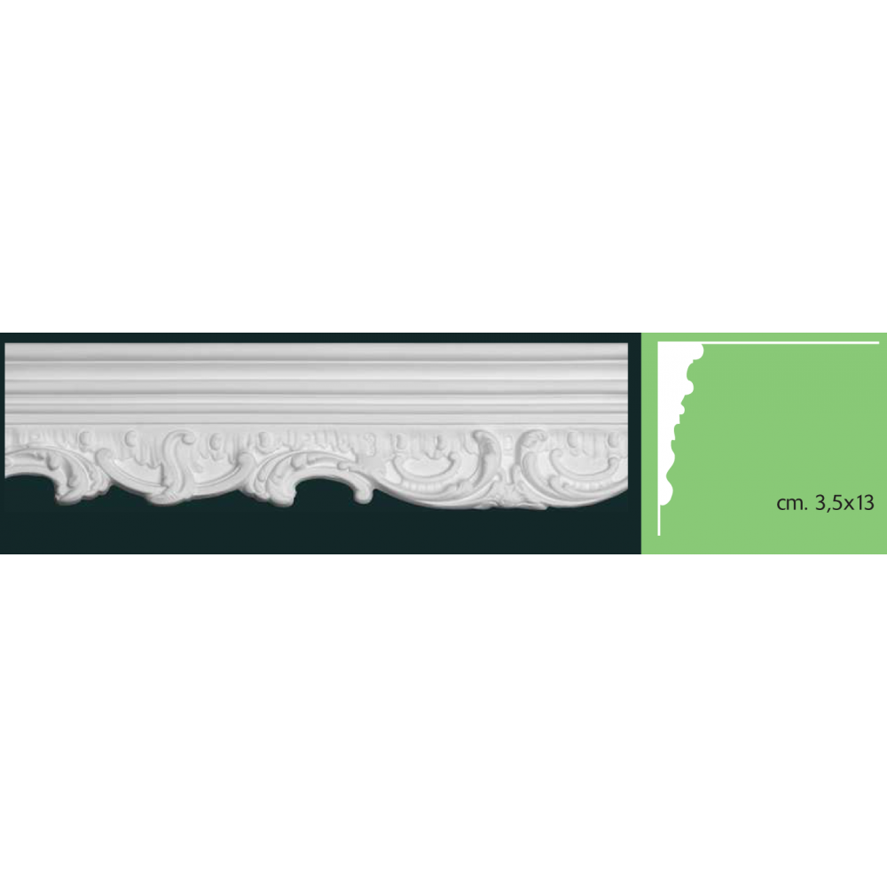 Cornice in gesso colore bianco dimensione 3,5x13x200 cm