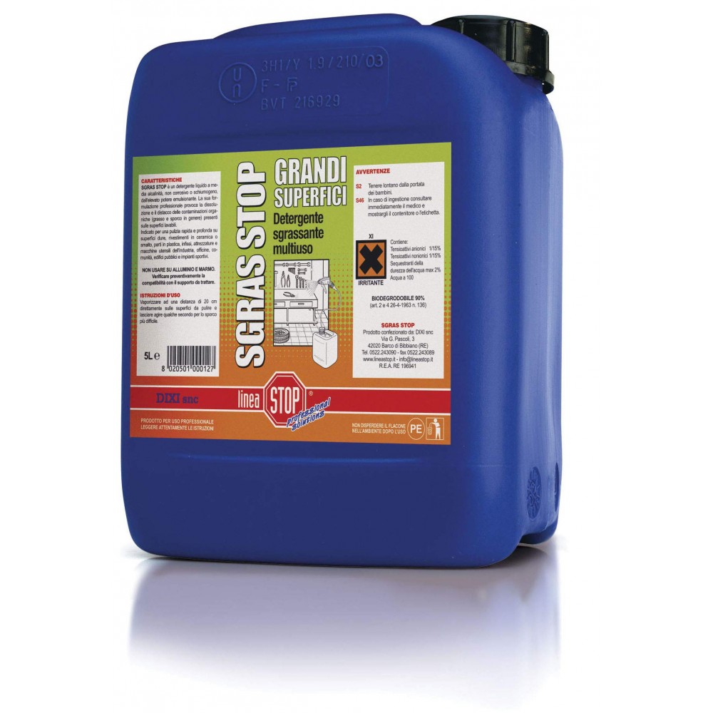 Detergente sgrassante non corrosivo né schiumogeno, ma con elevato potere emulsionante e per questo è indicato per la pulizia generale di tutti gli ambienti. Può essere utilizzato pure per lo sporco tenace, olio meccanico, officine.
